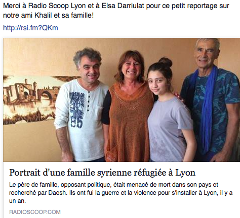 Un reportage sur Radio Scoop à propos d’une famille dont Alwane a participé à l’installation: Portrait d’une famille syrienne réfugiée à Lyon