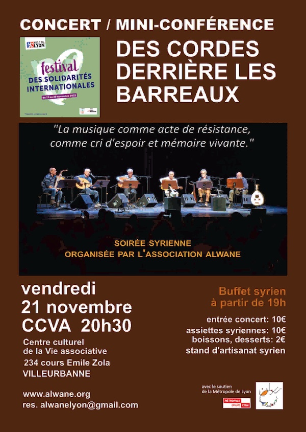 Avec Assad Shlash (Suède) – Adnan Hassan (Toulouse, France) – Ibrahim Berkdar (Suède) – Kisra Alkurdi (Allemagne) – Haitham Katrib (Suisse) – Hassan Abd Alrahman (Lyon, France) –Nabil Bouthadja (Paris, France) – percussionniste invité et la participation du poète syrien Faraj  Bayrakdar et du metteur en scène Bader Zakarya, anciens détenus de la prison de Saydnaya.